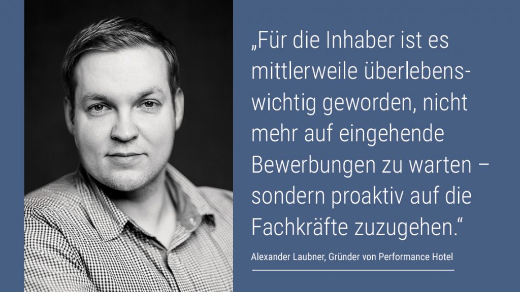 Für die Inhaber ist es mittlerweile überlebenswichtig geworden, nicht mehr auf eingehende Bewerbungen zu warten – sondern proaktiv auf die Fachkräfte zuzugehen, sich ihnen vorzustellen und sie von einem Wechsel in die Hotellerie oder ein anderes Gastgewerbe zu überzeugen. Daneben ist es sinnvoll, regional stärker sichtbar zu sein, um auf diese Weise nicht nur das Recruiting erfolgreicher zu betreiben, sondern um gleichfalls neue Kunden zu gewinnen.