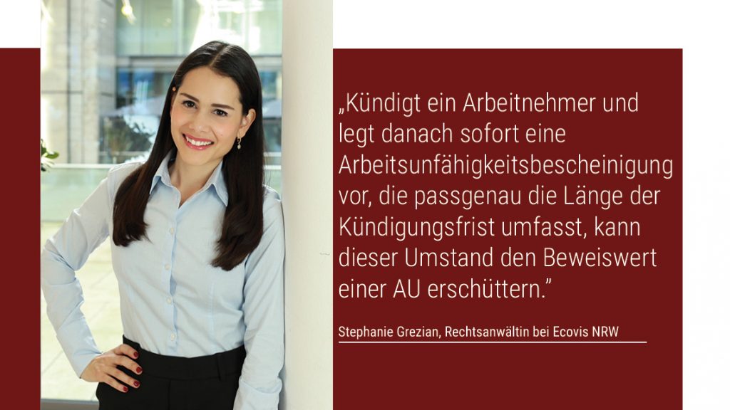 Das BAG sieht einen solchen ernsthaften Zweifel dann als gegeben an, wenn sich Arbeitnehmer nach der durch sie erfolgten Kündigung für die gesamte Restlaufzeit des Arbeitsverhältnisses krankschreiben lassen, das Datum der Erstbescheinigung auf das Kündigungsdatum fällt und das Ende der Arbeitsunfähigkeit dem letzten Arbeitstag entspricht.