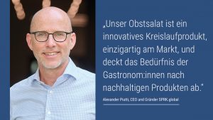 Das Foodtech-Unternehmen SPRK.global bietet der Gastronomiebranche die Möglichkeit, Lebensmittelverschwendung zu reduzieren und gleichzeitig das Klima zu schützen: Über einen digitalen Marktplatz analysiert das Start-up, wo welche Ware überschüssig ist und verteilt diese um – an lebensmittelverarbeitende Betriebe oder auch direkt an Caterer oder Großküchen. In Zusammenarbeit mit dem Obstsalatproduzenten mirontell stellt SPRK Obstsalat her, in dem mindestens 30 Prozent überschüssige, frische Ware der Lieferkette verarbeitet wird.