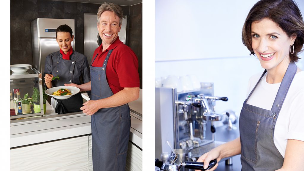 Mix & Match: Die verschiedenen Elemente von Arbeitskleidung sollten sich im Sommer wie im Winter ideal ergänzen. Beim Kombinieren ist darauf zu achten, dass jeweils die Unternehmens-CI gewahrt bleibt. Wenn Mitarbeitende beispielsweise ihre Arbeitsjacke ausziehen, sollte immer noch die CI gegeben sein. Es empfiehlt sich daher, die Ausstattung immer gesamtheitlich zu betrachten.