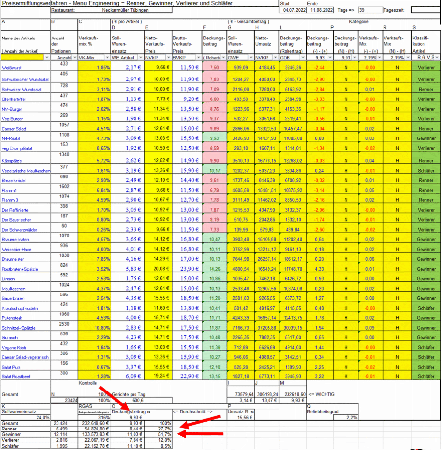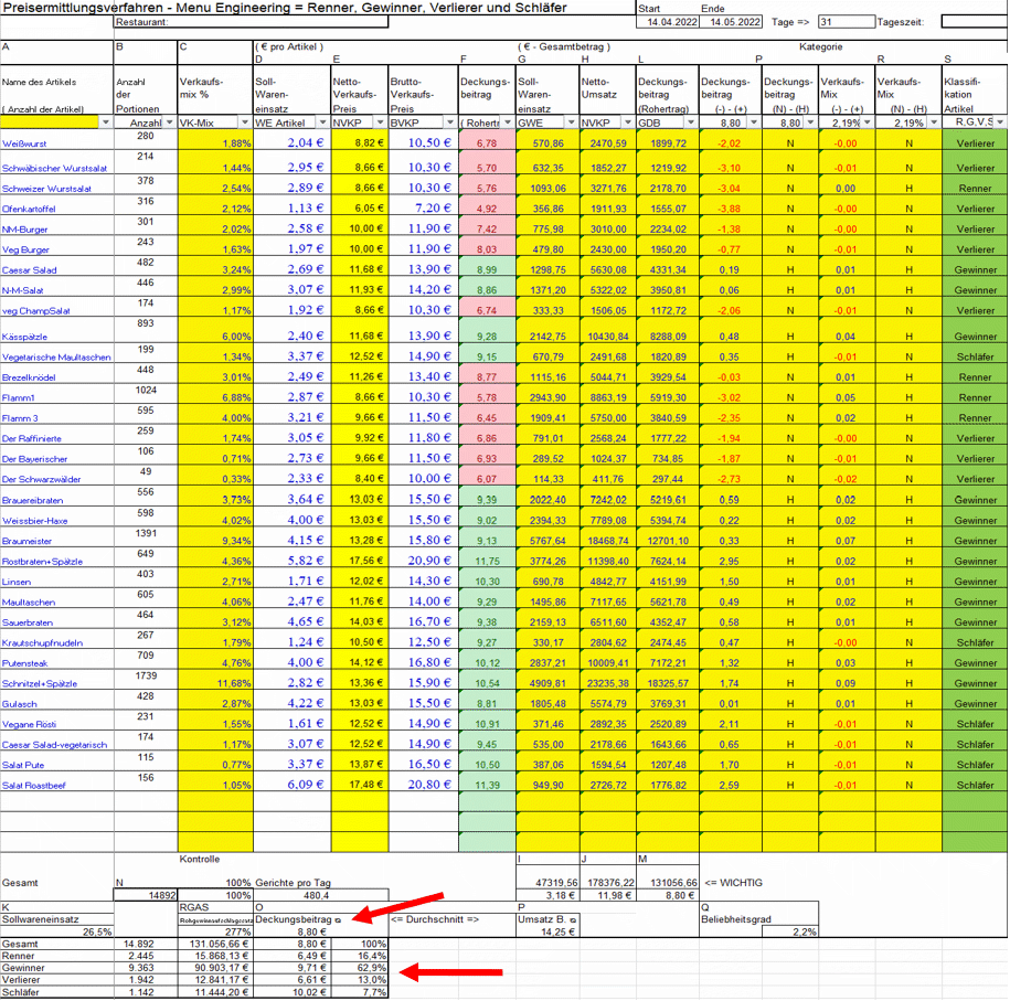 Wir haben das mal mit den verfügbaren Zahlen von Statista nachgerechnet. Insgesamt liegt der Verlust bei ca. 1,2 – 1,5 Milliarden Euro Profit im Jahr in der deutschen Gastronomie. Im Jahre 2015 sind wir deshalb auf die Deckungsbeitragskalkulation umgestiegen, weil die Einführung von Mindestlohn höhere Mitarbeitereinsatzkosten zur Folge hatte und wir mehr Marge brauchten. Für eine gute Marge sind Renner nicht geeignet und sind der schlimmste Virus seit 30 Jahren.