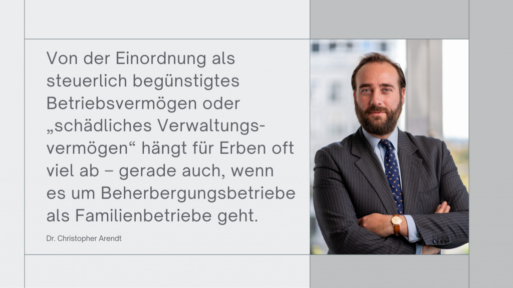 Von der Einordnung als steuerlich begünstigtes Betriebsvermögen oder „schädliches Verwaltungsvermögen“ hängt also für Erben oft viel ab – gerade auch, wenn es um Beherbergungsbetriebe als Familienbetriebe geht.