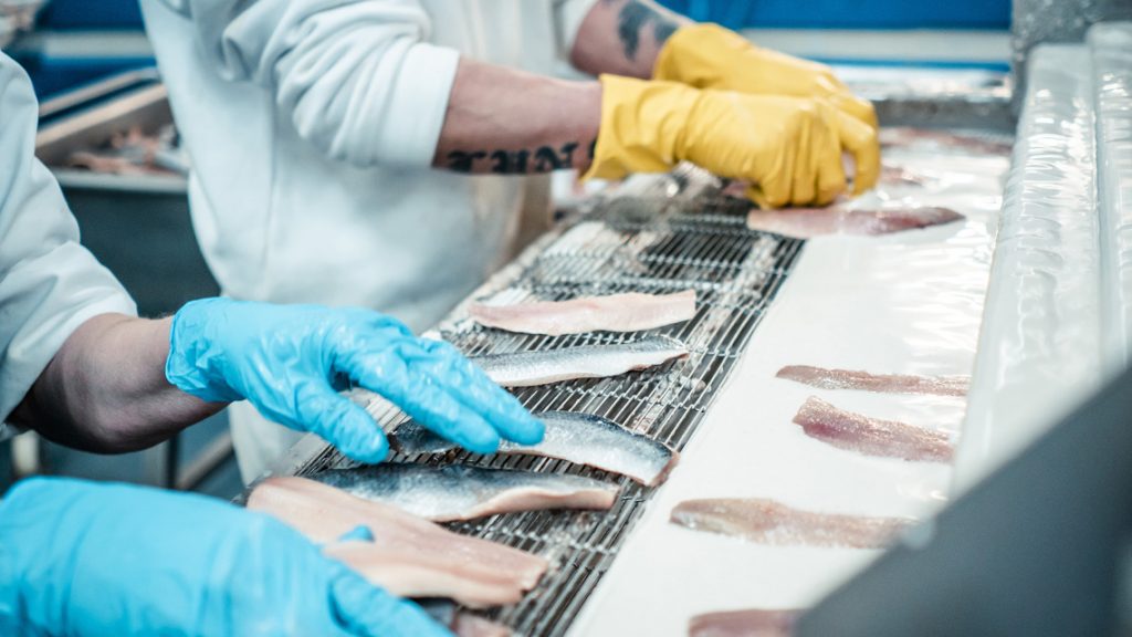 Nach der leichten Mehlierung läuft der Brathering über ein Transportband in etwa 170°C heißes Rapsöl und wird rund vier Minuten bis auf eine Kerntemperatur von 65°C schonend durchgebraten. Das Öl wird täglich kontrolliert, mit frischem Öl ergänzt und in kurzen Zeiträumen komplett gewechselt. Die Friesenkrone-Durchlaufbratanlage verfügt darüber hinaus über ein Öl-Reinigungssystem, das im Durchlauf alle Trüb- und Absetzstoffe aus dem Bratöl herausfiltert. Das sorgt zusätzlich für eine möglichst gleichbleibende Qualität.