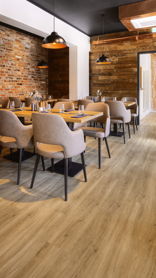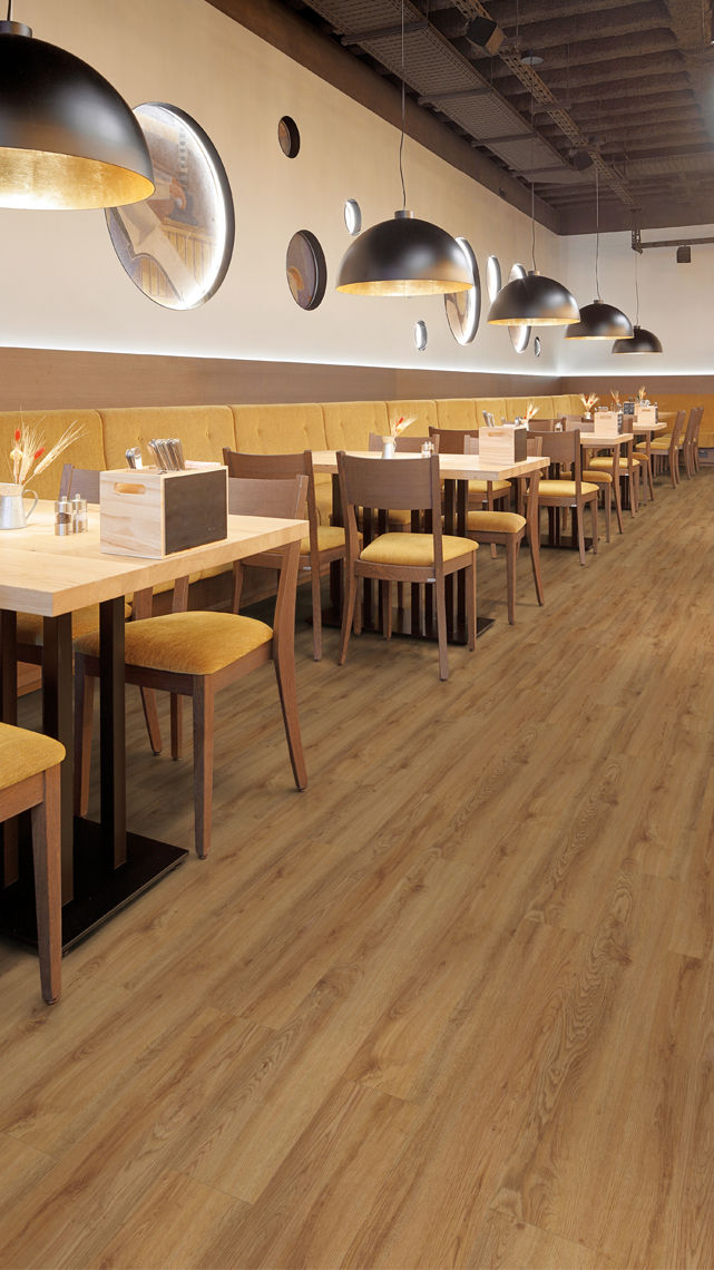 Die Oberfläche der Planken ist leicht zu reinigen und resistent gegen Verschmutzungen, was ideal für stark frequentierte Bereiche ist.