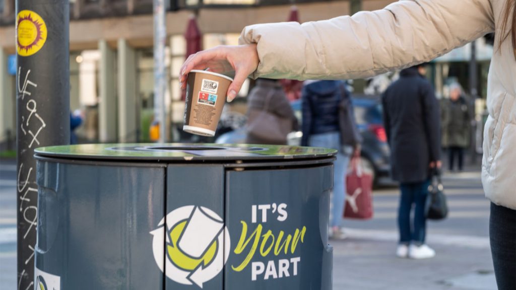 In diesem Herbst fiel im osthessischen Fulda der Startschuss für ein Pilotprojekt zur Sammlung von Bechern in Innenstädten. Dazu wurden in den Fußgängerzonen gekennzeichnete Sammelbehälter aufgestellt, die speziell dazu dienen, gebrauchte Einweg-Papierbecher für Heiß- oder Kaltgetränke in den Recyclingkreislauf zurückzuführen. Passend zum Mitmach-Charakter der Kampagne, sind die Behälter in der Innenstadt mit den Worten „It’s Your Part“ („Du bist dran!“) gekennzeichnet. Die Stadt Fulda zeigt damit Weitblick und positioniert sich als offen für einfach realisierbare und sich ergänzende Maßnahmen zur Abfallreduzierung. Sie unterstützt das Projekt durch die Abholung der Becher durch das eigene städtische Entsorgungsteam. „Wir sehen das Sammelsystem dabei auf keinen Fall als Konkurrenz zu Mehrweg-Systemen, sondern als eine sinnvolle und notwendige Ergänzung dazu“, betont Torsten Gröger. „Durch die Kombination beider Lösungen entstehen Synergien, durch die Nachhaltigkeit wirklich umfassend und glaubhaft gelebt werden kann.“