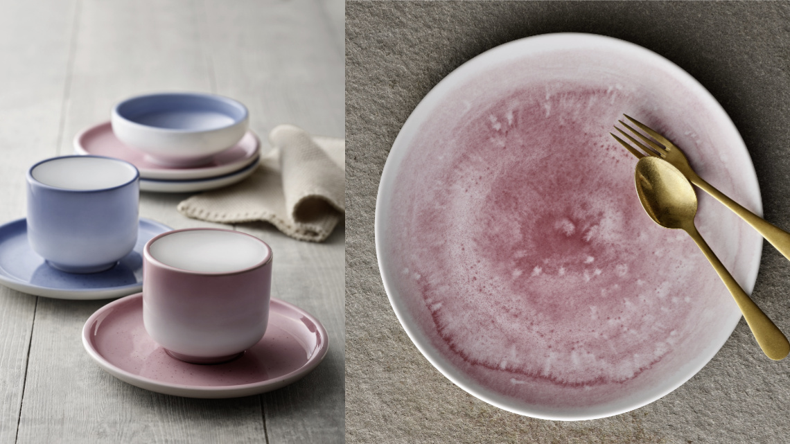 Eine solche Porzellankollektion ist beispielsweise Shiro von Schönwald: Geradlinig und puristisch in der Designsprache, skandinavisch, ein bisschen asiatisch und in jedem Fall modern. Das Vollsortiment gibt es mit und ohne Struktur sowie in Dekor-Varianten mit zurückhaltenden und mit intensiven Farben. Shiro ist auch Teil des Dekorkonzepts Mash-Up, das mit kräftigen Rosa und Blautönen Festlichkeiten fröhlich aufmischt.