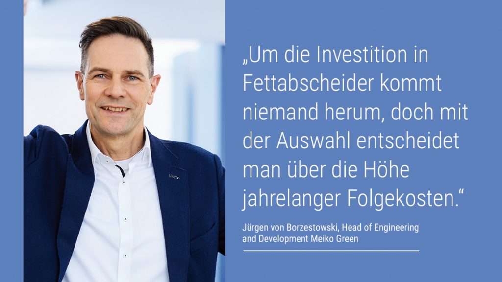 Wenn die Gastronomie durch eine Norm zu Mehraufwand und Folgekosten verpflichtet wird, hält sich die Begeisterung in Grenzen. Bei Fettabscheidern ist genau das der Fall. Umso wichtiger ist es, sich mit dem Thema vertraut zu machen, um auch die Vorteile zu nutzen. Welche das sind, weiß Jürgen von Borzestowski, Head of Engineering and Development beim Food Waste-Experten Meiko Green, aus dem Effeff. Er kennt die Chancen der Kombination von Fettabscheidern und Reste-Management.