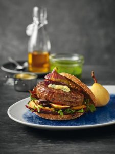 Nicht nur die abwechslungsreiche Kombination von Fleisch, Fisch und Gemüse mit verschiedenen Obstsorten bietet den Gästen Neues – auch die Präsentation der Köstlichkeiten lässt das BBQ-Herz höher schlagen. Mit dem passenden Porzellan lässt sich der Grilltrend immer wieder anders arrangieren. Ein Burger beispielsweise mit edlem Fleisch, kombiniert mit gegrillter Feige und Rochefortkäse wird bei Tafelstern auf Porzellan mit dem blauen Dekor Ink präsentiert. Das Dekor befindet sich nur in der Tellermitte des sonst weißen Couptellers aus der Kollektion Temptaste. Diese umfasst neben flachen und tiefen Couptellern auch Schalen sowie Platten in verschiedenen Größen.