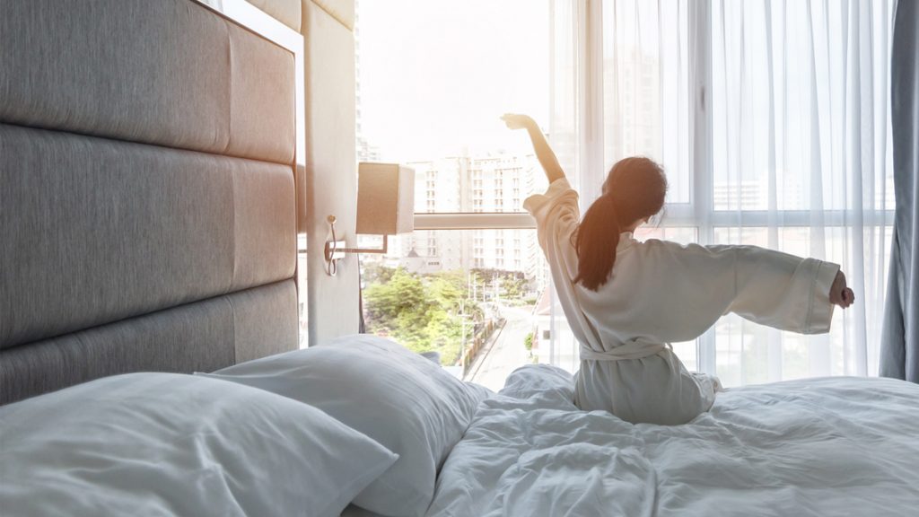 Christine Lenz hat eine ganze Palette von Ideen entwickelt, die Hotelgäste besser durch die Nacht bringen. „Düfte zum Beispiel sind ein spannendes Thema“, sagt sie. „Es gibt Duftnoten, die beleben, andere wiederum beruhigen und lassen harmonischer einschlafen. Sowas kann man leicht im Zimmer installieren. Auch der Geruch frischer Bettwäsche weckt in der Regel gute Gefühle.“ Das gleiche gilt für wohltuende Einschlafmusik oder -geräusche wie Kaminfeuer oder Meeresrauschen samt Entspannungsanleitung. Inzwischen durchaus populäre Angebote wie das Kissenmenü sollten intelligenter gestaltet werden und auch auf Decken, Schlafmasken und Ohrstöpsel ausgeweitet werden. Specials wie ein „Eulen- und Lerchenfrühstück“ – für Frühaufsteher oder Langschläfer – besondere Cocktails, Einschlaftees oder spezielle Kulinarik nebst Ernährungsberatung für besseren Schlaf runden das Angebot sinnvoll ab.