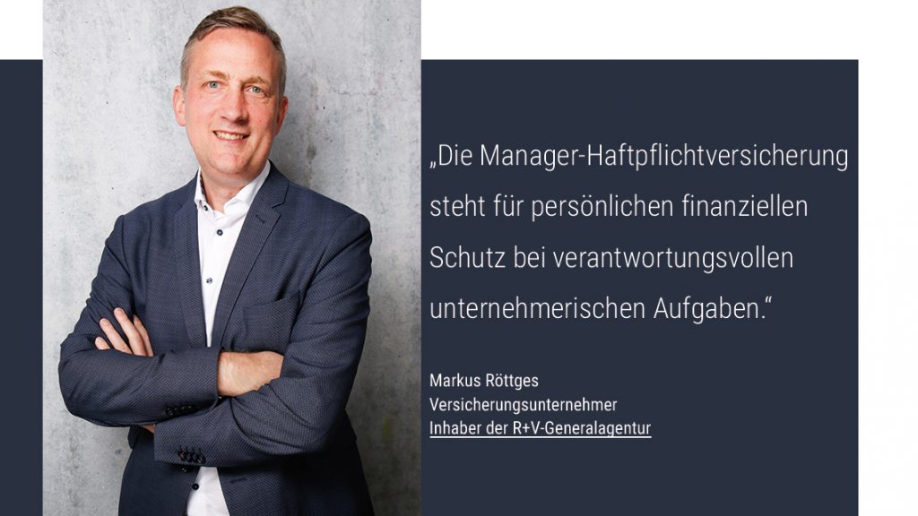 „Manager, Geschäftsführer und Vorstände tragen viel Verantwortung und haften zunehmend persönlich für Fehler. Daher sind die Risiken, denen Geschäftsführer ausgesetzt sind, breit gefächert. Das zeigt auch eine Untersuchung: Die Zahl der D&O-Schadensfälle in Deutschland hat sich in den vergangenen zwanzig Jahren etwa verdreifacht“, sagt Markus Röttges, Inhaber der gleichnamigen R+V-Generalagentur in Düsseldorf, Mönchengladbach und Radevormwald. Die R+V gehört zu den größten Versicherungsgesellschaften Deutschlands, Markus Röttges ist Experte für betriebliche Risikomanagement aus Versicherungssicht und Berater von Gastronomen und Hoteliers. Laut der Studie „D&O Insurance Insights: Management Liability Today“ der Allianz Global Corporate & Specialty AGCS zählt Deutschland nach den USA zu dem Land mit den meisten D&O-Schadenfällen. „Das Problem: Schäden, die im geschäftlichen Umfeld aufgrund von falschen Entscheidungen oder durch Fahrlässigkeit entstehen, können richtig teuer werden und in die Hunderttausende oder sogar Millionen gehen. Da die Haftungsforderungen aus dem Privatvermögen beglichen werden müssen, kann ein Schaden je nach Größenordnung sogar die Privatinsolvenz bedeuten.“ Das bedeutet: Mit einer D&O-Versicherung können sich Eigentümer und Manager gezielt gegen Schadensersatzansprüche wegen angeblicher unternehmerischer Fehlentscheidungen absichern.