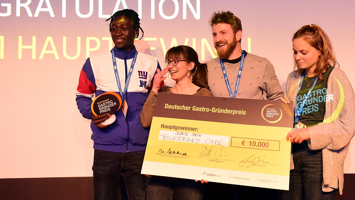 Gegen mehr als 260 Konkurrenten konnte sich das Über den Tellerrand Café aus München beim Deutschen Gastro-Gründerpreis durchsetzen. Das Integrationscafé bringt seit einem Dreivierteljahr Geflüchtete und Einheimische zusammen und durch Mitarbeiter aus sieben Nationen ist die Speisekarte ebenso kreativ wie vielfältig. Der Gast selbst entscheidet, wie viel er zahlen möchte, es gibt drei verschiedene Preise pro Mittagstisch. Im Finale konnte Geschäftsführerin Jasmin Seipp das Konzept in 5 Minuten so überzeugend vorstellen, das in der anschließenden Publikumsabstimmung die Mehrzahl der per SMS abgegebenen Stimmen auf ihr Konto ging.