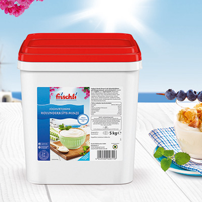 Wie alle anderen Desserts von frischli sind auch die neuen Joghurtcremes nach griechischer Art kennzeichnungsfrei für Zusatzstoffe, direkt aus dem wiederverschließbaren 5-kg-Eimer servierfertig und ungekühlt haltbar.