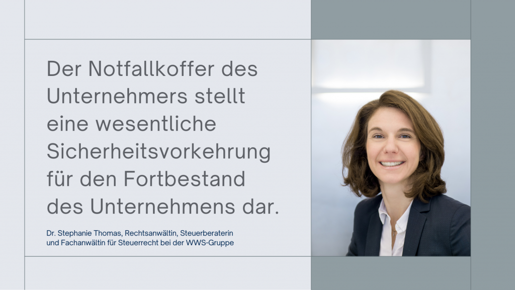Notfallkoffer sollte wesentliche Informationen und Anweisungen zur Führung der Geschäfte enthalten