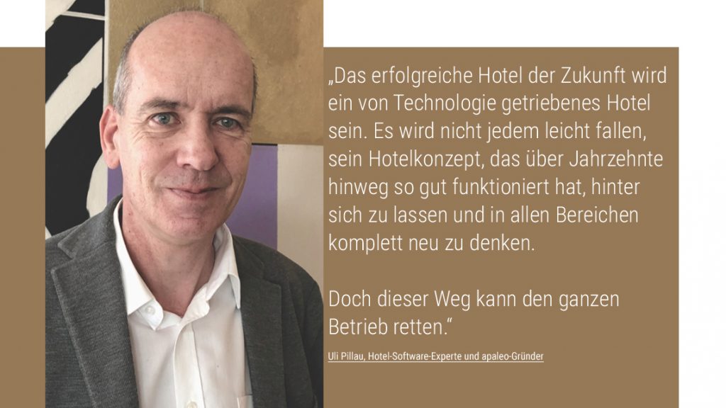 Der Hotel-Software-Experte und Apaleo-Gründer Uli Pillau gibt im Interview Einblicke in die Situation der finanziell geschwächten Hotelbranche. Außerdem erläutert er, wie seiner Meinung nach Hotels zukünftig, trotz Coronakrise, Gewinne erwirtschaften können.