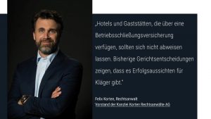Am 26.01.2022 verhandelte der Bundesgerichtshof, kurz BGH, über die Klage eines Gastronomen, der von seiner Versicherung in Bezug auf seine Betriebsschließungspolice eine Entschädigung für coronabedingte Schließungen forderte. Der Anspruch wurde abgelehnt. Rebecca Gellert, Rechtsanwältin für Immobilienrecht bei der Korten Rechtsanwälte AG, ordnet das Urteil kurz ein.