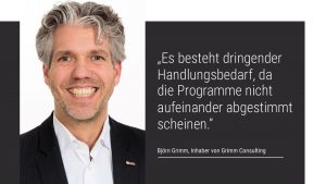 Björn Grimm ist langjähriger Berater und Trainer für die Hotellerie und Gastronomie. Er warnt vor der Problematik, dass die von der Bundesregierung beschlossenen Fördermittel offensichtlich nicht aufeinander abgestimmt sind. Dies bedeutet konkret, dass Betriebe aufgrund von Beihilferichtlinien durch die Inanspruchnahme von KfW-Krediten den Anspruch auf weitere Hilfsmittel verwirken könnten. Hier wiegen sich viele Betriebe in falschen Sicherheiten, wie ein konkretes Beispiel zeige.