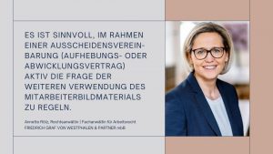 Ein Arbeitgeber ist zu einer Schadensersatzzahlung in Höhe von € 10.000,- verurteilt worden, nachdem er 9 Monate nach Ende des Arbeitsverhältnisses mit Fotos und Videos eines ausgeschiedenen Mitarbeiters für eine Schulung geworben hat. Annette Rölz, Rechtsanwältin und Fachanwältin für Arbeitsrecht, erläutert das Urteil.
