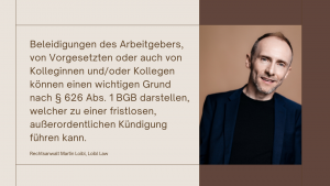 Das Bundesarbeitsgericht zieht klare Grenzen für den Schutz vertraulicher Kommunikation. Beleidigende Äußerungen durch Arbeitnehmer in privaten Chatgruppen können zur fristlosen Kündigung führen. Ein No-Go stellen beleidigende, rassistische, sexistische und zu Gewalt aufstachelnde Äußerungen über den Arbeitgeber und/oder dessen Vertreter in privaten Chatgruppen dar – sie können eine außerordentliche, fristlose Kündigung rechtfertigen.