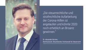 Der Staat hat seit dem Ausbruch der Pandemie unterschiedliche Corona-Hilfen in Milliardenhöhe ausgezahlt. Jetzt beginnt auch die steuerrechtliche und strafrechtliche Aufarbeitung dieser staatlichen Unterstützungsleistungen. Dazu überprüfen Finanzämter und wohl auch Staatsanwaltschaften die Berechtigung zur Inanspruchnahme von Hilfen. Dr. Alexander Kersten, Rechtsanwalt, Steuerberater und Fachanwalt für Steuerrecht, erläutert die Hintergründe und wer mit einer Kontrolle von Finanzbehörden und Staatsanwaltschaften rechnen muss.