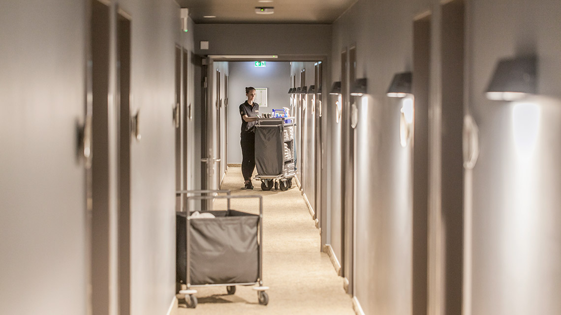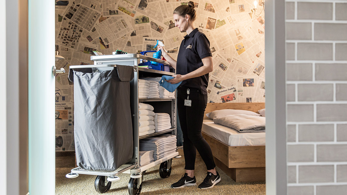 Es gab Zeiten, da kauften die Hotels Zimmermädchenwagen & Co selbst. Jetzt wird, um die Liquidität der Hotels hoch zu halten, auch dieser Invest auf den Reinigungsdienstleister out-gesourct. Um die Hoteleinkäufer zu überzeugen, welche Zulieferer-Produkte zu listen – ein Must sind – spannt Tobias Moschny oftmals den Bogen etwas größer: „Mitarbeiter*innen, die keinen adretten und gepflegten Eindruck machen, können kein Gefühl von Sauberkeit vermitteln. Weder nach innen noch nach außen. Gleiches gilt für das Arbeiten mit minderwertigen Produkten. So sieht man doch öfter als gewünscht Zimmermädchenwagen „Marke Eigenbau“ mit Haushaltsmüllsäcken und dergleichen auf den Hotelfluren. Unser Produkt, die Sauberkeit, sieht man nicht gleich auf den ersten Blick. Jedoch kann das Gefühl von Sauberkeit und Hygiene bereits durch das äußere Erscheinungsbild der Mitarbeiter*innen, sowie deren Freundlichkeit und einwandfreies Equipment, transportiert werden.