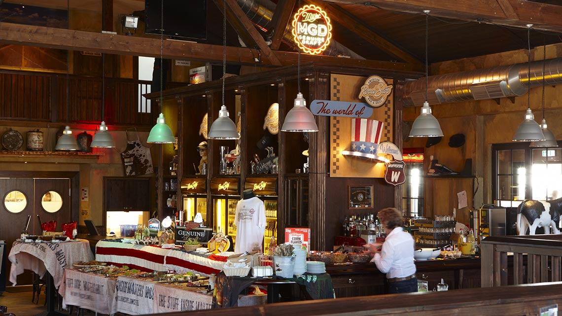 Der Schritt zum Road Stop war mutig, denn vor 20 Jahren waren Gastro-Konzepte als Freestander, also einzelne Gebäude an stark frequentierten Straßen, noch die Ausnahme. „Wir waren anfangs eher eine Bikerbude, mit einem Getränkeanteil von 70 Prozent und jeder Menge Motorräder vor der Tür“, erinnert er sich. Das hat sich gewandelt. Road Stop ist heute ein Treffpunkt für alle Generationen und die ganze Familie. Der Speisen- und Getränkeanteil hat sich auf 70 zu 30 Prozent umgekehrt. Es dominiert die original amerikanische Küche: Steaks, zubereitet vor den Augen der Gäste am offenen Grill, Ribs, Wings, Wraps und Salate, und natürlich Burger. Die sind mehr denn je gefragt. Natürlich gab es Burger im Road Stop von Anfang an, sie wurden aber inzwischen weiterentwickelt. „Der Trend spielt uns in die Karten“, sagt Carsten im Brahm, habe aber auch neue Mitbewerber auf den Markt gebracht. „Wir mussten nachziehen, aber wir verbiegen uns nicht“, ist seine Ansage. Man habe sicherlich den einen oder anderen Trend mitgestaltet. Bei neuen Entwicklungen habe man genau abgewogen, was passt zu Road Stop und was nicht.