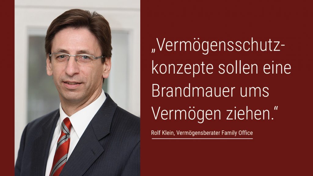 Für Rolf Klein bildet ein individuelles Vermögensschutzkonzept die Grundlage für alle weiteren Überlegungen. „Bevor wir uns in der heutigen Zeit mit der Auswahl entsprechender Finanzprodukte auseinandersetzen, muss es zunächst darum gehen, Netz und doppelten Boden aufzuspannen, sodass auch exogene Schocks, politische Entscheidungen oder bestimmte rechtliche Entwicklungen dem Vermögen keinen Schaden anhaben können.“ Ziel sei, durch Asset Protection eine Brandmauer ums Vermögen zu ziehen und Weiterentwicklung und Erhalt des Vermögens auf einer stabilen Basis zu ermöglichen. „Wenn man schließlich weiß, welche Risiken fürs Vermögen bestehen und gegen welche potenziellen Schadenereignisse man sich besonders schützen will, kann man sich darüber Gedanken machen, wie und mit welchem Ziel das vorhandene Vermögen angelegt werden soll.“