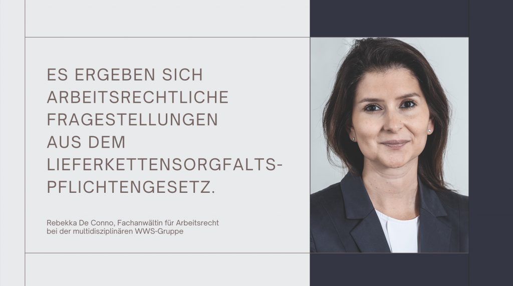„Bislang gilt die Regel: Unternehmen mit mindestens 3.000 Mitarbeitenden müssen seit Anfang 2023 diese Verpflichtung umsetzen, Unternehmen mit mindestens 1.000 Mitarbeitenden sind dem Regime ab Anfang 2024 unterworfen. Die Betroffenen können durch das Gesetz entlang ihrer Lieferketten verantwortlich gemacht werden. Das kann bei Verstößen zu hohen Bußgeldern führen“, sagt die Fachanwältin für Arbeitsrecht Rebekka De Conno von der multidisziplinären WWS-Gruppe in Aachen, Mönchengladbach und Nettetal (www.wws-grupp.de). Die Rechtsanwältin berät Unternehmen unter anderem rund um das Lieferkettensorgfaltspflichtengesetz und die daraus resultierenden arbeitsrechtlichen Herausforderungen. Rebekka De Conno weist in dem Zusammenhang auch auf eine potenzielle Verschärfung der Regelungen hin: „Das EU-Parlament hat sich zuletzt für ein strengeres Lieferkettengesetz ausgesprochen, das derzeit in Arbeit ist. Demnach sollen Unternehmen mit Sitz in der EU in allen Sektoren mit mehr als 250 Angestellten und mehr als 40 Millionen Euro Jahresumsatz weltweit den Regeln unterliegen. Unternehmen mit Sitz außerhalb der EU, die mehr als 150 Millionen Euro und mindestens 40 Millionen Euro davon in der EU umsetzen, sollen dem Gesetz auch unterfallen.