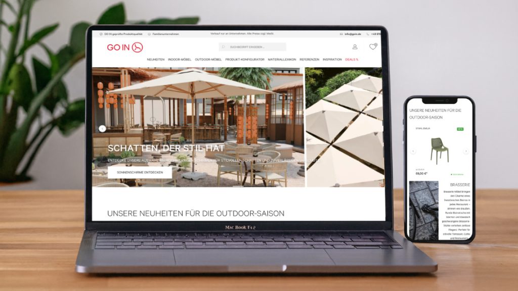 Das konsequente Ausrichten der neuen Webpräsenz auf die Nutzerbedürfnisse bietet ein hochwertiges Shopping-Erlebnis, das sich in einer optimierten Lead-Generierung und in höheren Conversions niederschlägt. Durch das Anbinden weiterer zentraler Systeme vernetzt das Expertenteam interne Prozesse für eine reibungslose Systemlandschaft. Dazu zählen PIM- und ERP-Systeme. Der Relaunch des B2B-Onlineshops von GO IN setzt neue Maßstäbe im Contract-Möbelhandel, bindet Kunden stärker an die Marke und steigert die Qualität der Leads.
