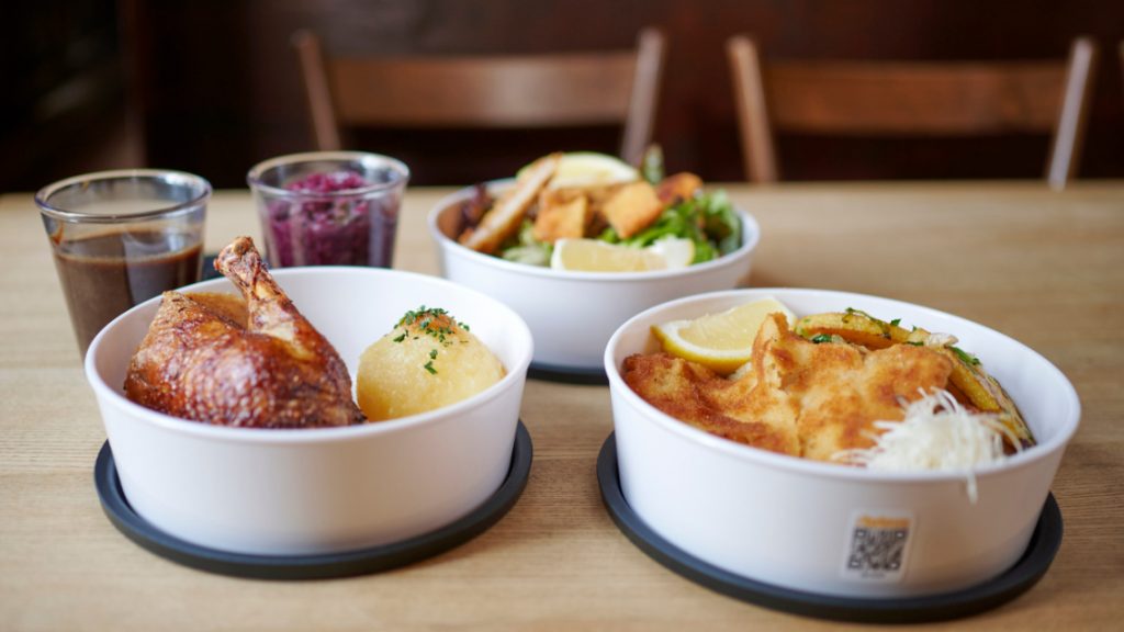 Die Überlegung, das Relevo-Mehrwegsystem auch für ihr Oktoberfest-Zelt, der Münchner Stubn, zu übernehmen, war quasi gleich beantwortet. Kathrin Wickenhäuser-Egger sagt: „Wir beschäftigen uns viel mit Nachhaltigkeit und Ressourcenschonung. Mit unserer Erfahrung vom vergangenen Oktoberfest liegt es uns sehr am Herzen, dass Lebensmittel nicht weggeworfen werden. Deshalb bieten wir einerseits mit Relevo und dem Geschirr eine nachhaltige und unkomplizierte To-Go-Lösung an, damit die Gäste ihre Reste mitnehmen können. Andererseits haben wir unser Speisenangebot überarbeitet, bieten zum Beispiel mehr vegane Speisen an, wie veganen Leberkäs und vegane Würstl. Auch das Brotzeitbrettl gibt es als solche Variante. Natürlich sind wir noch immer eine Hähnchenbraterei und vielleicht ist es uns auch deshalb wichtig, dass hochwertige Lebensmittel – wie Fleisch – die wir einkaufen, nicht im Müll landen. Und Lebensmittel wegzuwerfen, tut uns in der Seele weh. Hierbei geht es uns nicht um die Kosten, denn dann könnten wir ja schlechte Qualität einkaufen. Nein! Unser Anspruch ist hohe Qualität.“